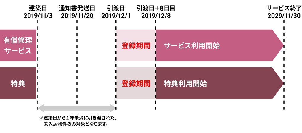 ※例②:12月1日が引渡日で、12月11日に登録完了通知書が発送された場合、12月18日からご利用できます。