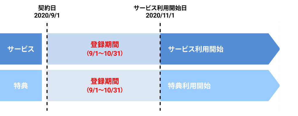 例:9/1がサービス契約日の場合、11/1よりご利用いただけます。